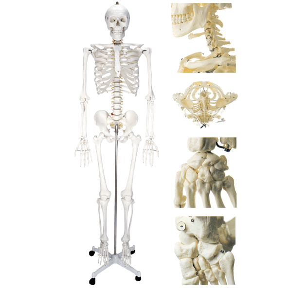 5、肢骨:由六十四塊骨組成,肩帶部分的肩胛骨和銷骨固定構(gòu)成胸廓上,上肢的游離都可拆卸,肩、肘、腕等關(guān)節(jié)均可自由活動(dòng)。