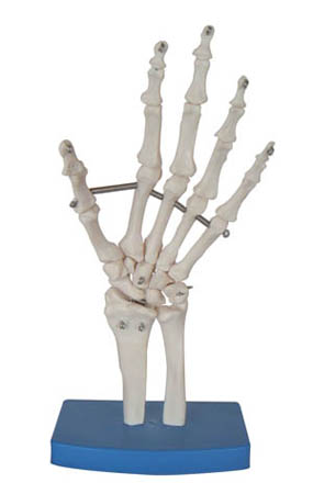 這款模型顯示手部解剖結(jié)構(gòu),可展示各種手功能。自然大,有底座。