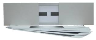 5. 圖片紙:6張,紙張大小410×105mm。兩條線寬2mm的水平直線紙片1張,兩個三角形的紙片1張,兩個寬度為10、20、50、70mm長方形紙片各1 張。圖案黑色,位于紙的對稱中心,圖案左右間隔20mm。