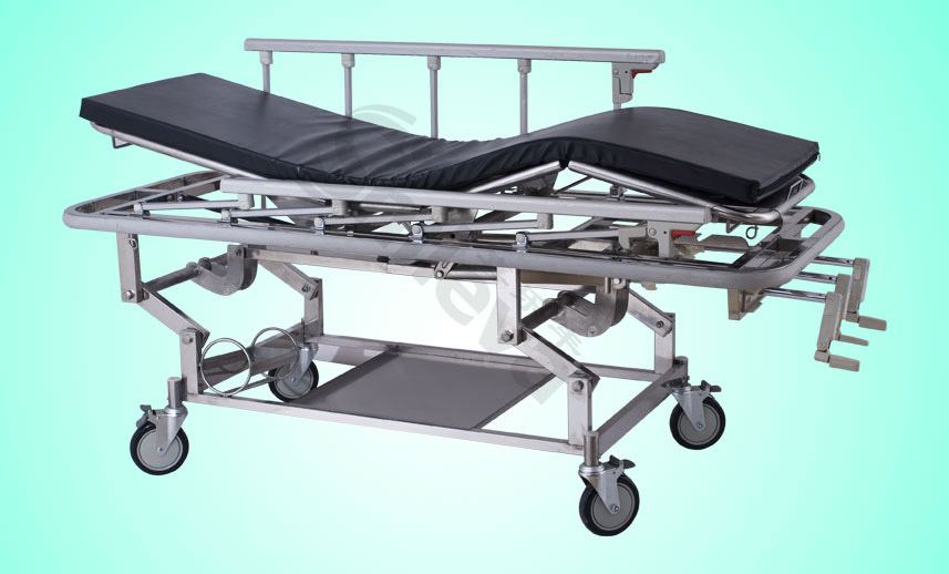 升降急診床(三搖)規(guī)格:1900*750*580-780mm (L*W*H)材質(zhì):全不銹鋼,床墊為高密度泡棉外套人造皮 6”萬向剎車輪