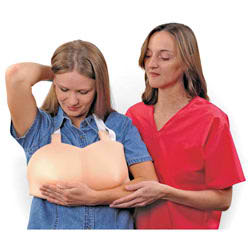 An incredibily realistic model that allows a woman to learn breast self-examination with both hands. Fits naturally over a woman’s own breasts, and provides the added advantage of letting her look at the model from the perspective of her own body. Plus, it also allows the instructor to observe the technique the woman would use on herself. The Breast Vest contains nine lumps, all different in size and consistency to simulate realistic tumors. Washable with soap and water. Includes adjustable Velcro® neck and back straps.