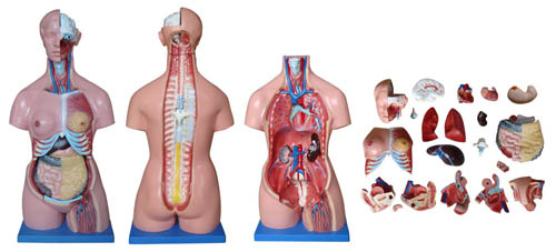 這款在XC-204的基礎(chǔ)上增加了無(wú)性生殖器?煞殖21件:軀干,女性胸腔蓋,頭,眼球,腦,一塊脊椎神經(jīng),肺(2件),心(2件),肝,腎,胃,腸(2件),男性生殖器官(2件),女性生殖器官帶胎兒(3件),無(wú)性生殖器。其中胃和腸可與XC-204中的胃和腸替換。用PVC制成,安放于塑料座上。尺寸:85CM。