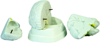 本模型適用于中學(xué)生理課程及醫(yī)學(xué)院校在講解腦的解剖課程時(shí),作為直觀教具,便于學(xué)生得到腦的整體概念,以及各部分的相互關(guān)系,是研究腦解剖的案頭模型。