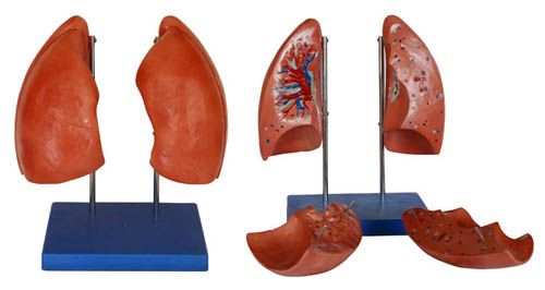 本模型自然大小,分成4件。兩瓣肺葉可取下,示其內(nèi)部結(jié)構(gòu)。有底座。