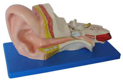 中型耳模型,適合初級(jí)科學(xué)課程使用,顯示有關(guān)聽力和平衡的所有主要結(jié)構(gòu)。分成2件,3倍放大。用PVC制成,安放于塑料座上。尺寸: 32x16x11 CM。