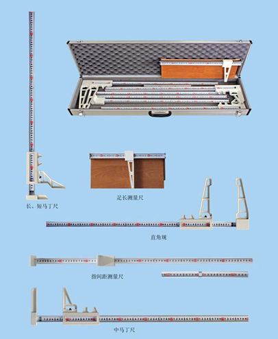 本套測量尺可根據(jù)人體不同形態(tài)而通用。用于測量人體身高、坐高,臂伸、腿長、小腿長、肩寬、上肢等。