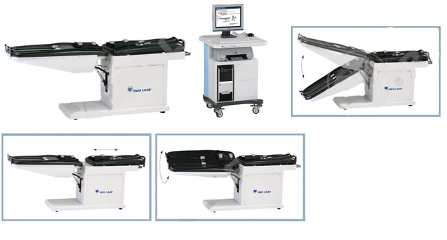 該“腰椎牽引系統(tǒng)”床面根據(jù)人體工程學(xué)原理一次壓模成型,懸伸式造型。采用高度集成液壓系統(tǒng),應(yīng)用PLC、旋轉(zhuǎn)編碼、傳感等高技術(shù)對(duì)牽引力,成角、旋轉(zhuǎn)角度進(jìn)行嚴(yán)格檢測(cè),全過(guò)程均由電腦控制。該牽引系統(tǒng)具有成角、旋轉(zhuǎn)、快牽、慢牽組合功能。它能糾正椎體間三維方向的改變,恢復(fù)腰椎生理弧度,能完成正骨醫(yī)生用手法不能達(dá)到的某些組合動(dòng)作,實(shí)現(xiàn)了靠人工不能達(dá)到的立體、交替牽引。配有病歷檔案管理軟件,更好地發(fā)揮計(jì)算機(jī)的作用,使脊柱骨傷病的治療達(dá)到更高科學(xué)水平。