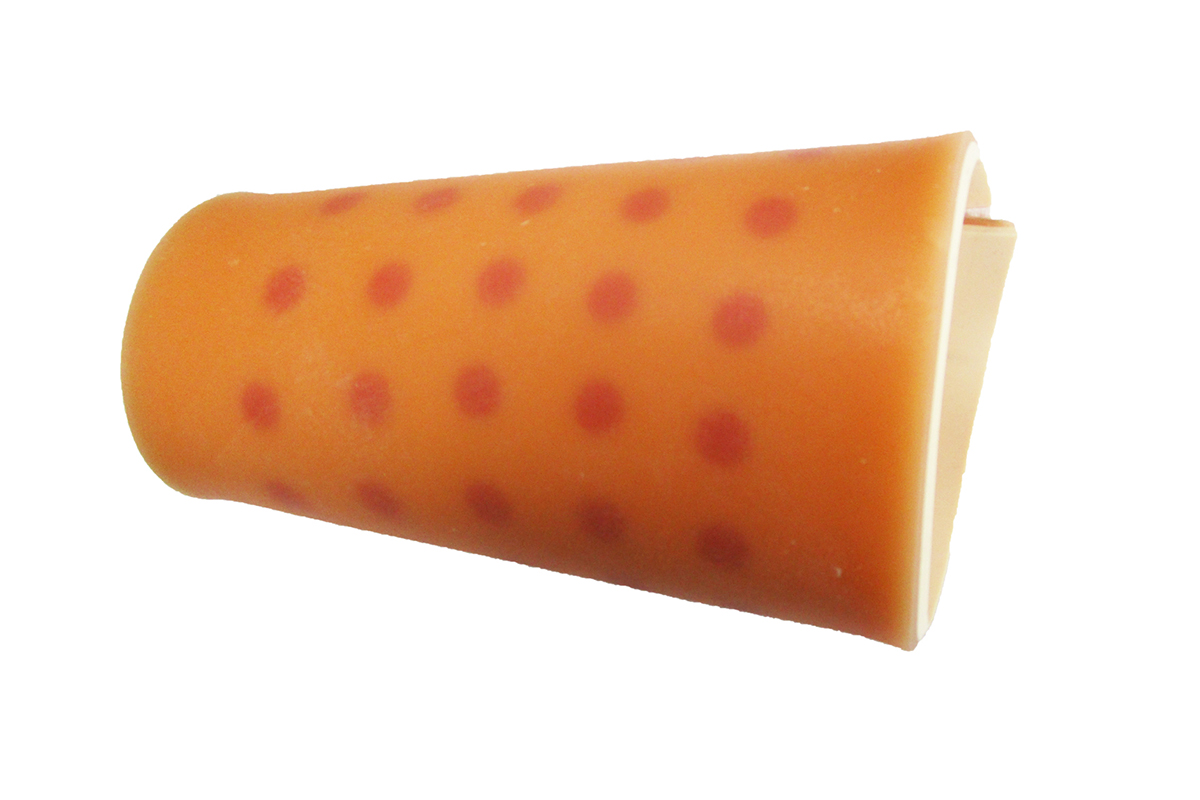 環(huán)形外套提供幾十個皮內(nèi)注射點練習,可方便套在模型人手臂上可實現(xiàn)5°的進針角度,正確操作時會出現(xiàn)真實的皮丘,皮丘與皮試陰性結果極其相近,抽出液體后皮丘消失。