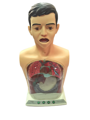 1、 模型為成年男性上半身,可實(shí)現(xiàn)洗胃時(shí)的多種體位;仰臥位、左側(cè)臥位、坐位解剖結(jié)構(gòu)精確, 包括牙、舌、懸雍垂、氣管、支氣管、左右肺臟、食管、胃、膈、膽囊、胰腺、脾、十二指腸、 結(jié)腸等結(jié)構(gòu)。
