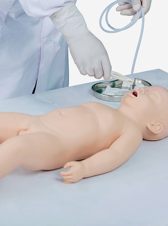 模擬嬰兒,外形逼真,觸感真實(shí),自口腔、咽喉、食管至胃的器官解剖結(jié)構(gòu)完整,體表骨性標(biāo)志清楚,關(guān)節(jié)活動(dòng)靈活,可擺放不同診療體位。適用于進(jìn)行胃灌洗操作訓(xùn)練及其他護(hù)理操作。