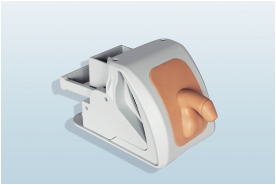 2 模型為便攜式外觀設(shè)計,仿真模擬男性外陰,恥骨聯(lián)合處觸診骨性標志明顯,包含完整的陰莖、陰囊、肛門、尿道、前列腺等解剖結(jié)構(gòu),尿道具有生理彎曲,帶來接近真實的手術(shù)操作體驗。
