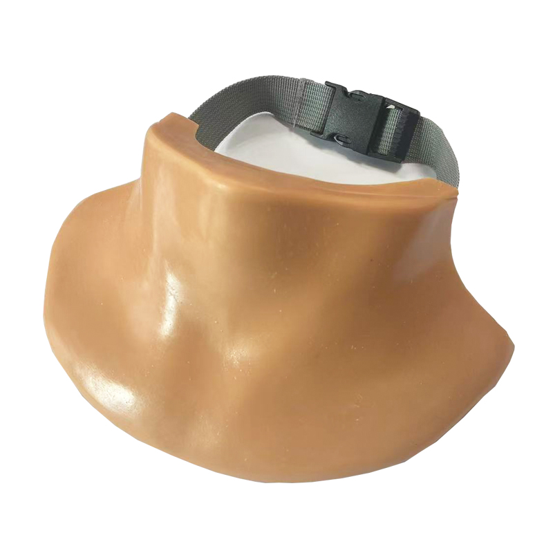1、 外形模擬亞洲男性頸部,具有仿真的皮膚、皮下組織、環(huán)狀軟骨、甲狀軟骨及氣管結(jié)構(gòu);帶有防護(hù)結(jié)構(gòu),可佩戴于真人或模型身上。